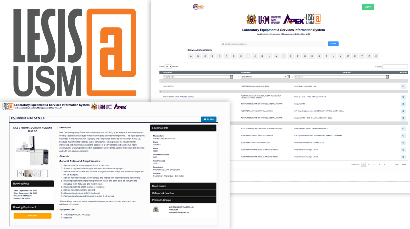 Our core responsibilities include managing the LESIS@USM platform for equipment bookings, test requests, and online payments; ensuring that laboratory quality and safety meet global standards; developing talent through competency enhancement programs; and building a robust network within the scientific community at both local and international levels.